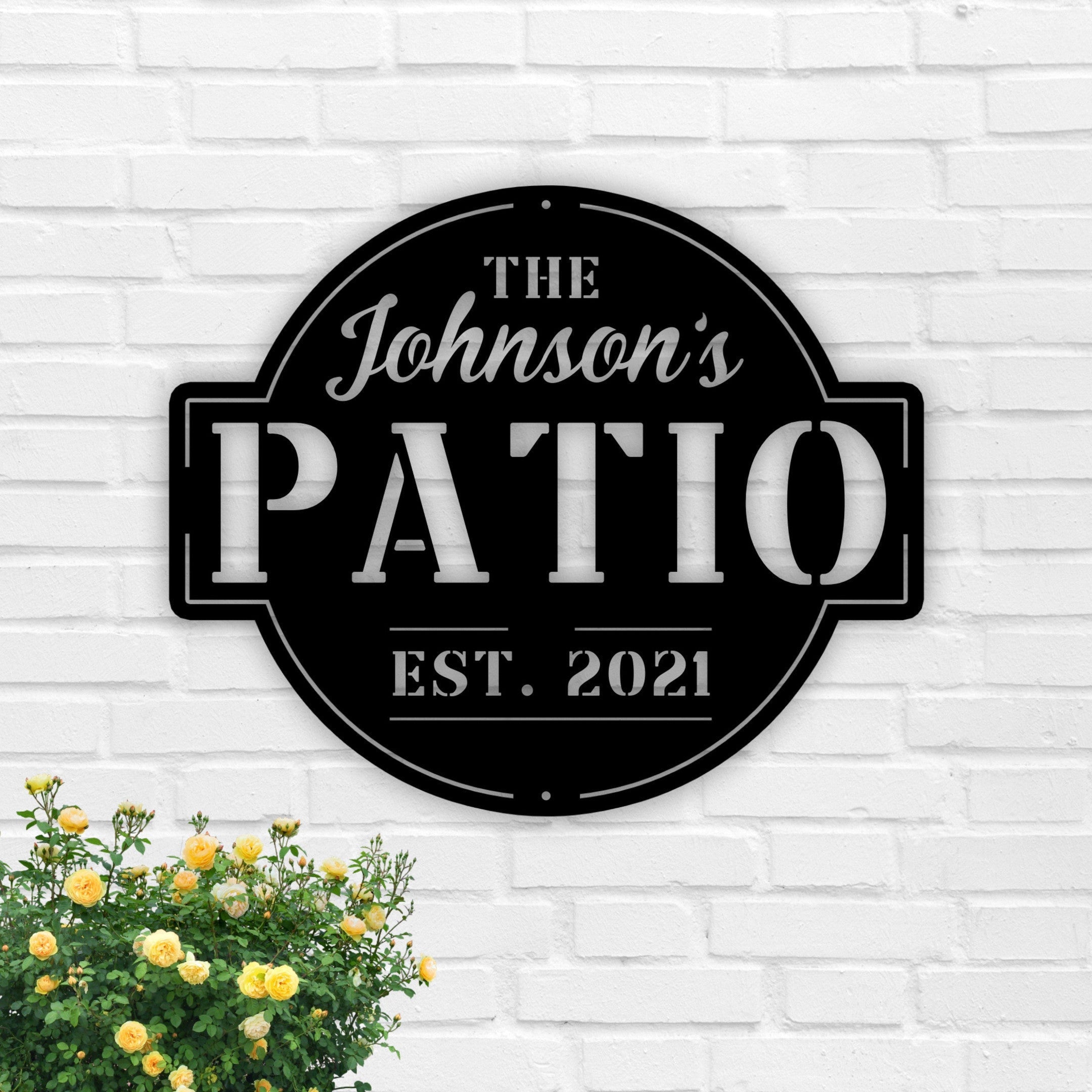 Aeticon PrintPrint Personalized Family Name Patio Metal Sign, Welcome To The Patio Established Date Metal Sign, Personalized Patio Sign, Outdoor Patio Sign Laser Cut Metal Signs Custom Gift Ideas