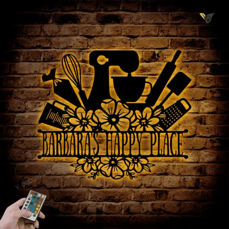 Baking Lovers Personalized Metal Wall Art Metal Wall Art With Led Lights