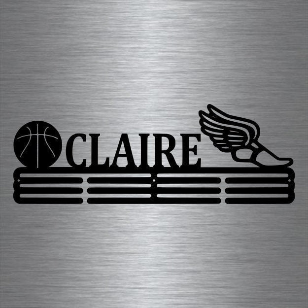 Basketball And Track Custom Name Medal Hanger Holder Display Rack Male 3 Rung, Cut Metal Sign, Metal Wall Art, Laser Cut Metal Signs Custom Gift Ideas