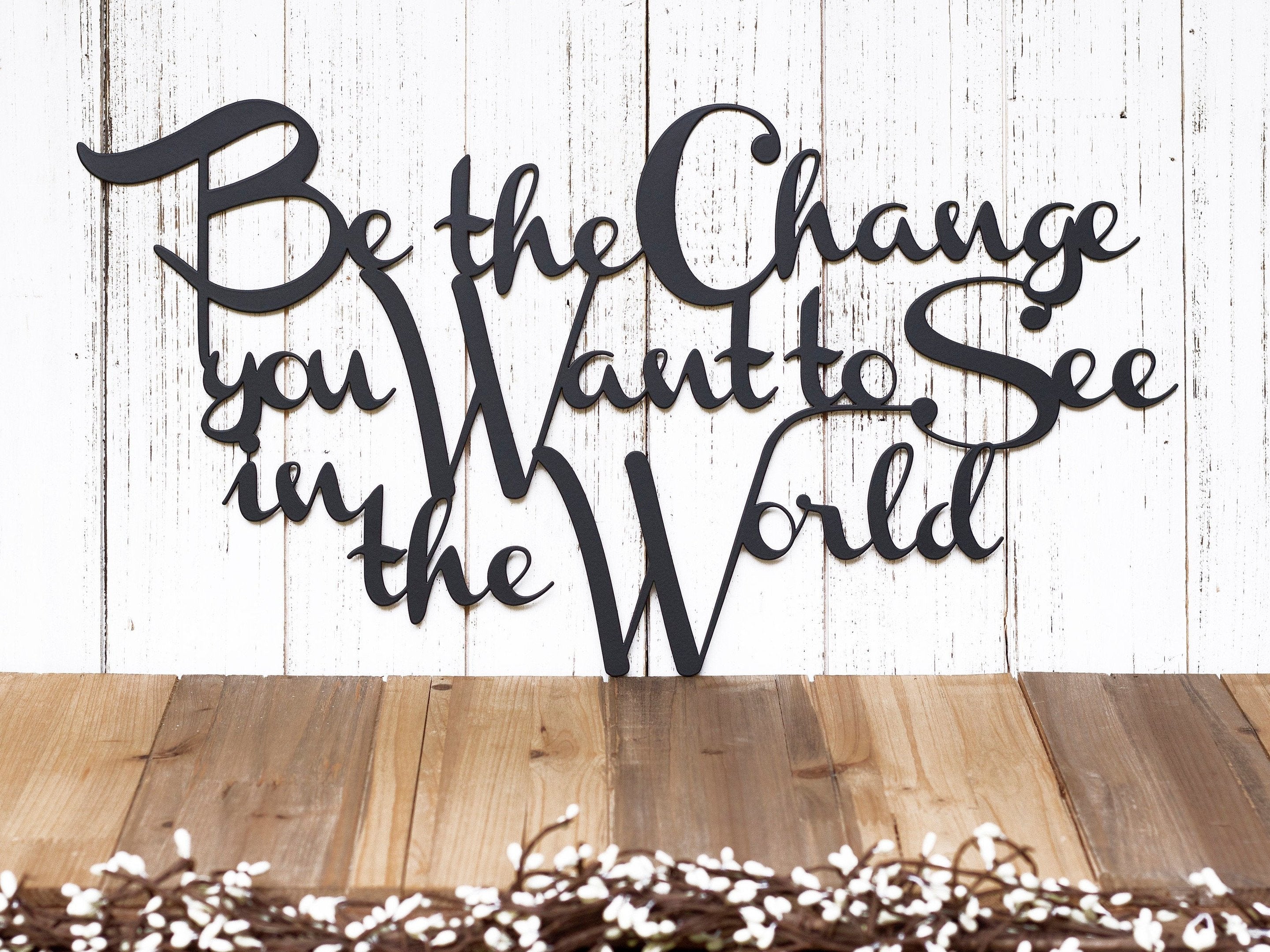 Be The Change You Want To See In The World Metal Sign Black Outdoor Sign Outdoor Sign Gandhi Decorations