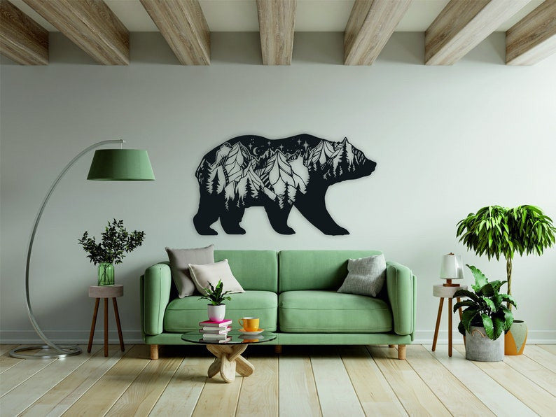 Bear And Forest Design Metal Wall Decor Night View Mountain Pattern Discount Wall Decor Bear Decor Inspirational Decors Decorations