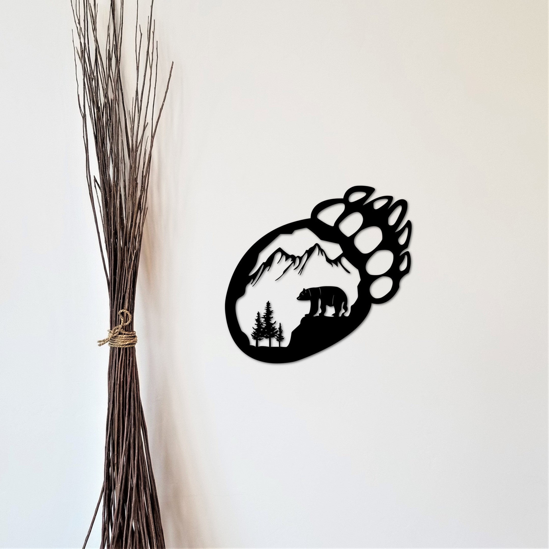 Bear Claw Sign Metal Bear Track With Bear Cabin Bear Paw Wildlife Decor Bear Decor Wall Hanging Rustic Decorations