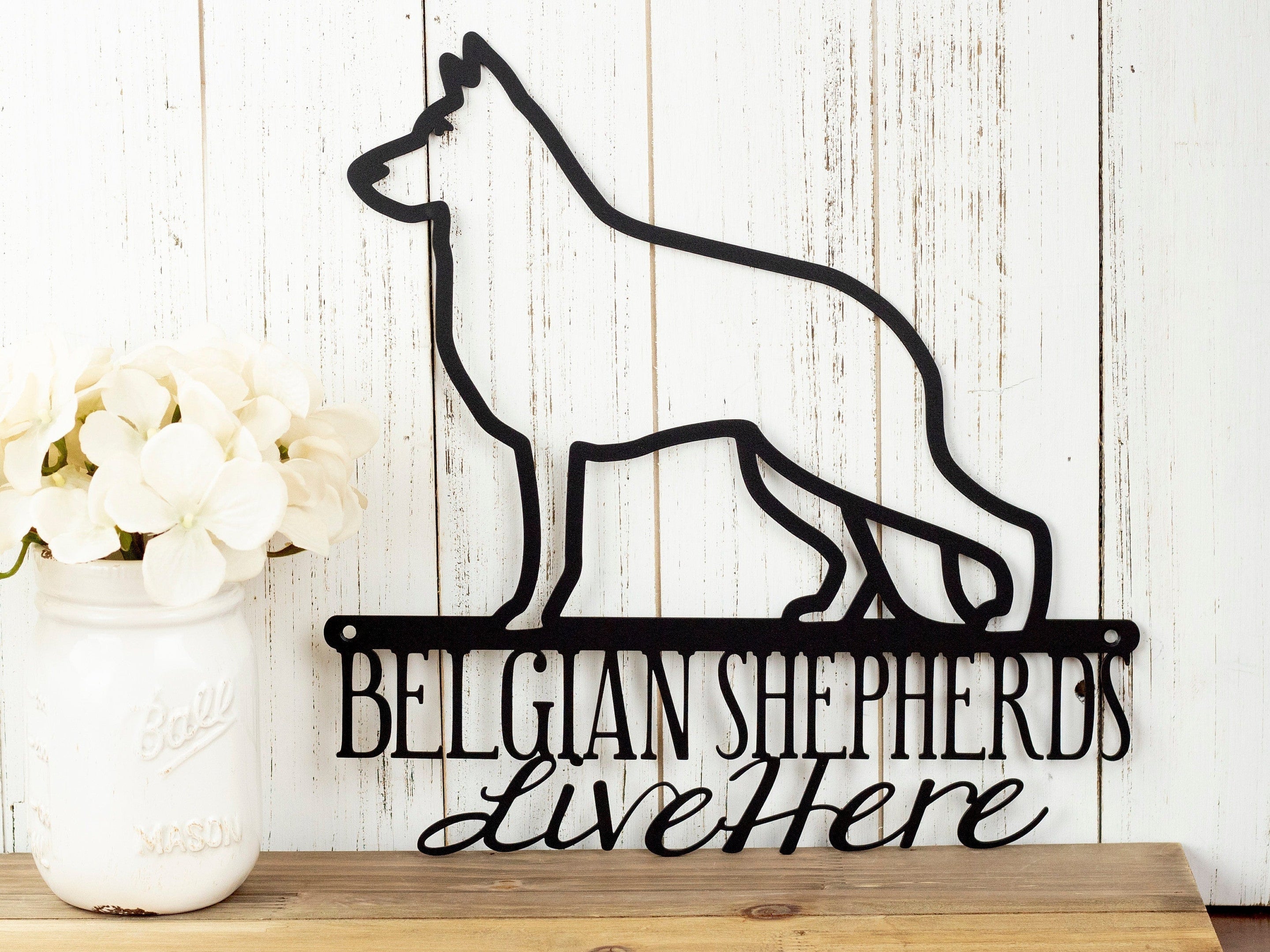 Belgian Shepherds Live Here Metal Sign Black Metal Sign Dog Sign Door Sign Wall Hanging Wall Plaque Decorations