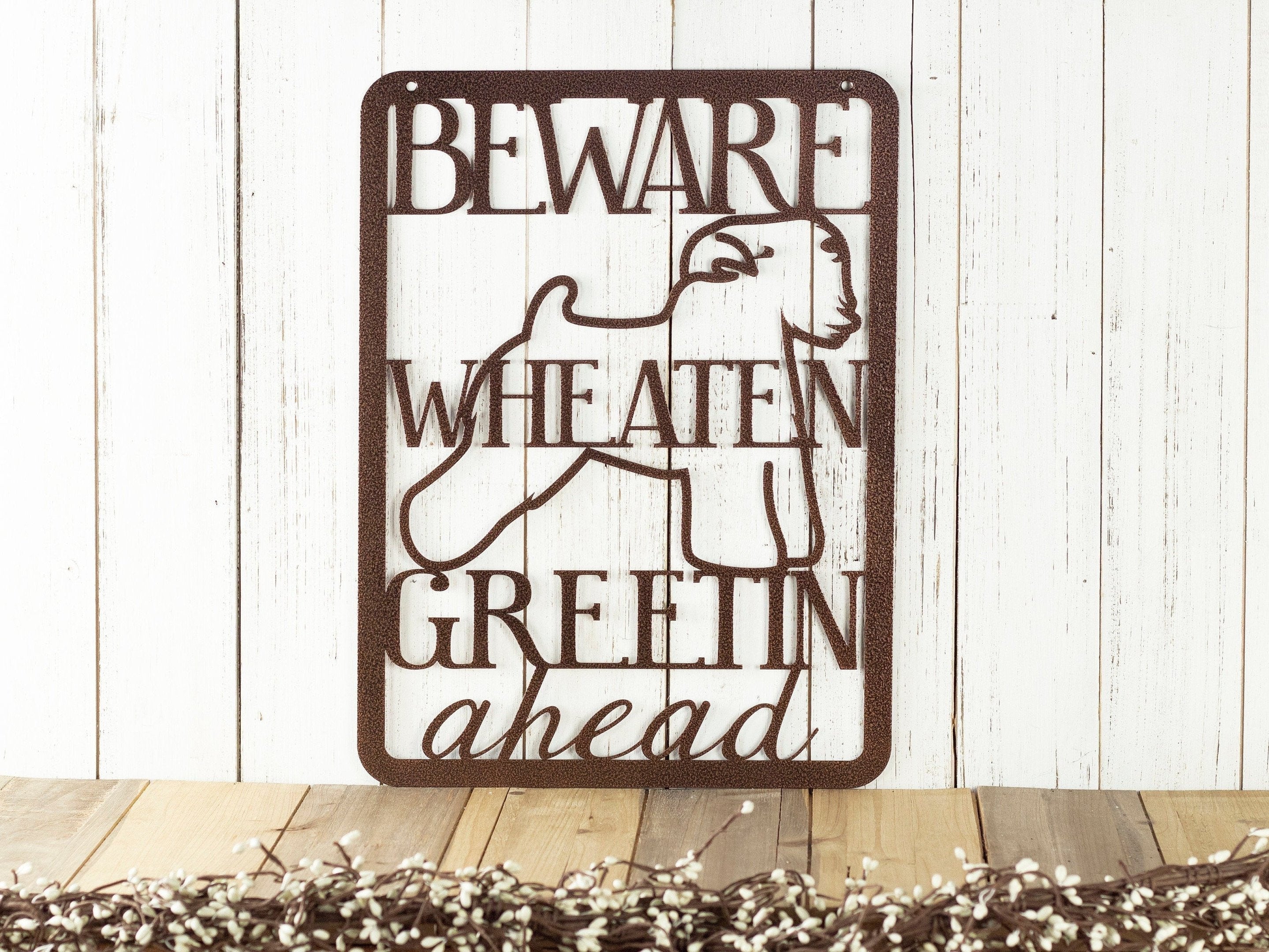 Beware Wheaten Greetin Ahead Metal Sign Outdoor Sign Dog Decor Wall Hanging Beware Of Dog Sign Dog Sign Decorations