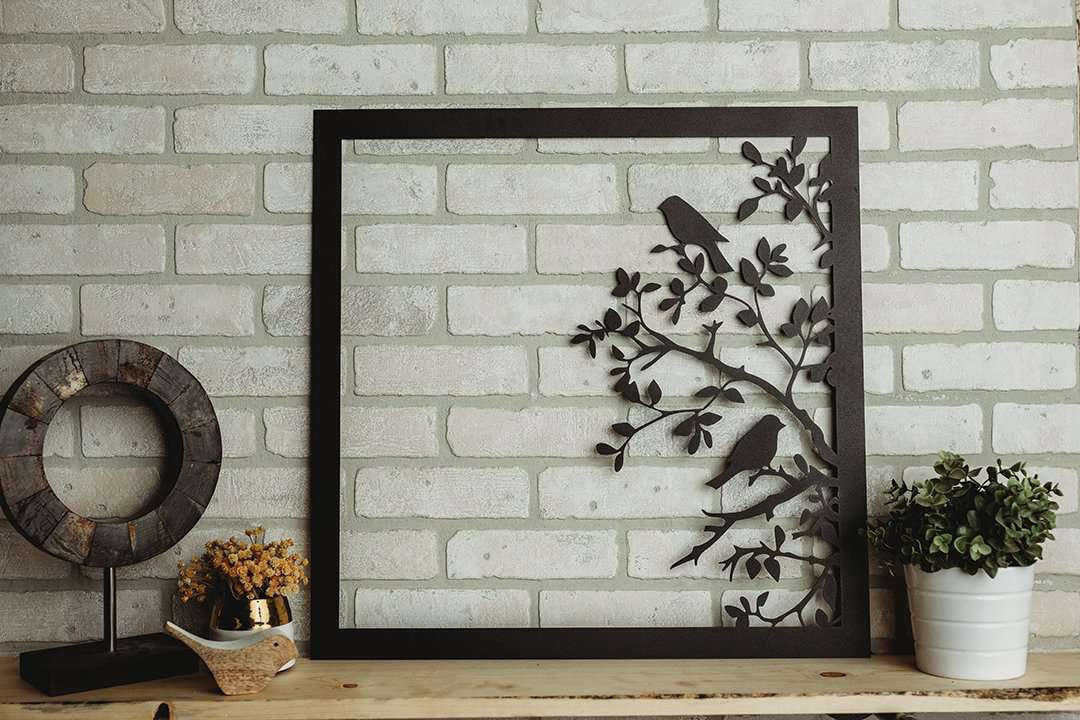 Bird and Tree (Square) Cut Metal Sign Laser Cut Metal Signs Custom Gift Ideas