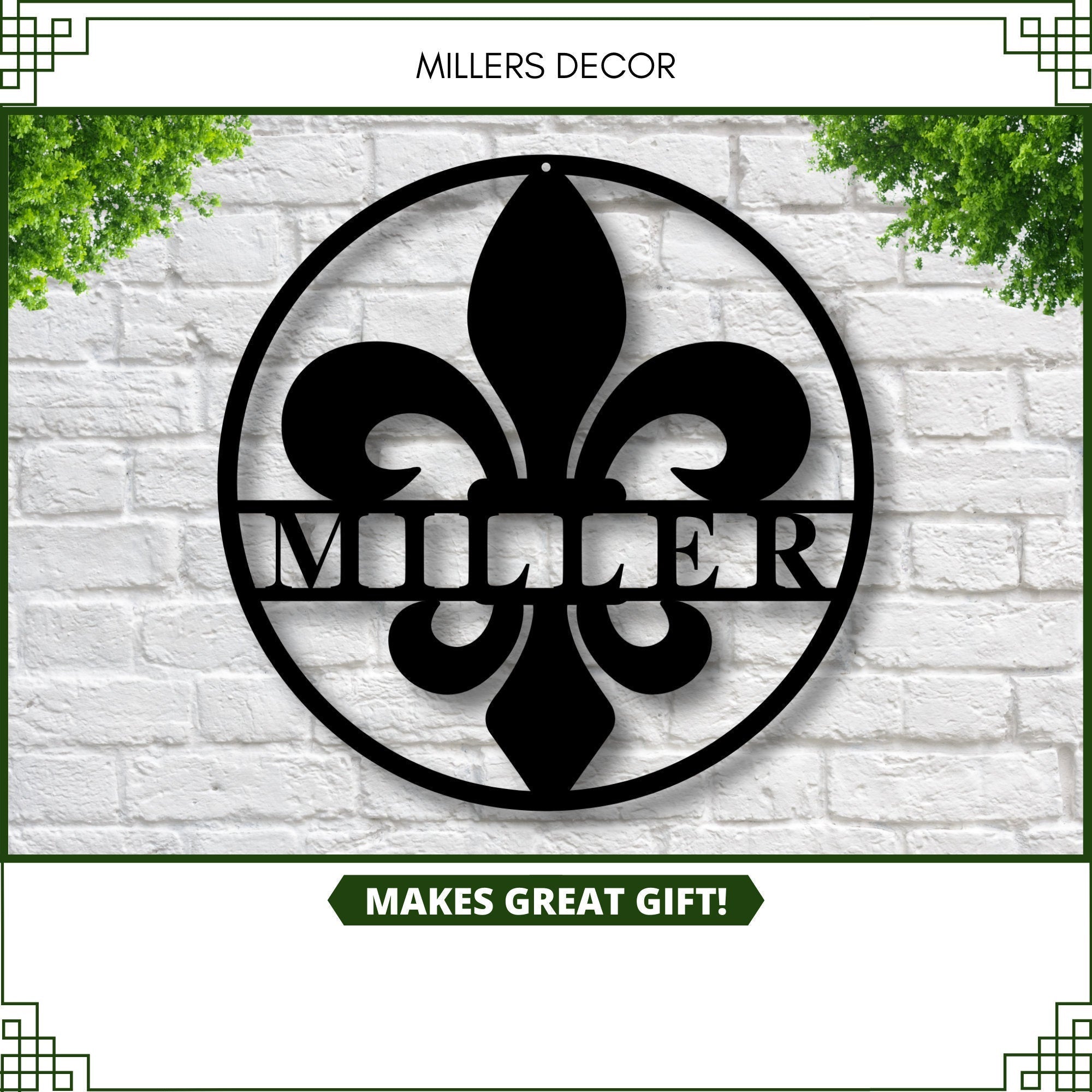 Black Friday Sale, Fleur De Lis Personalized Family Name Sign Housewarming Gift Door Hanger Wedding Gift Metal Sign Fathers Day Gift , Laser Cut Metal Signs Custom Gift Ideas