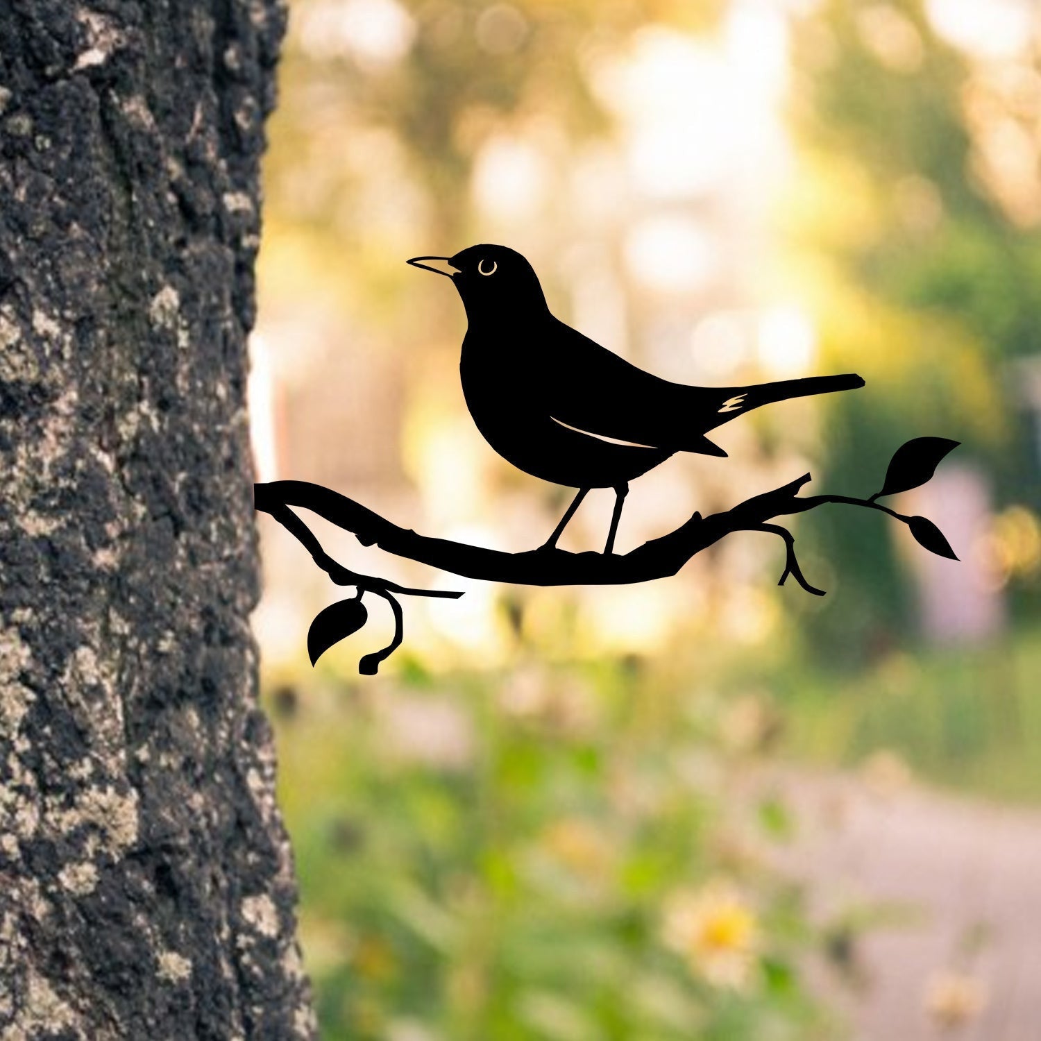 Blackbird Metal Tree Stake, Bird Metal Art, Home Decoration, Metal Laser Cut Metal Signs Custom Gift Ideas