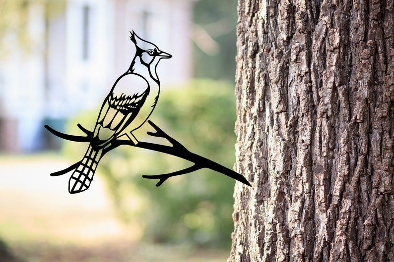 Blue Jay Bird Metal Bird Tree Stake Christmas Gift Decorations