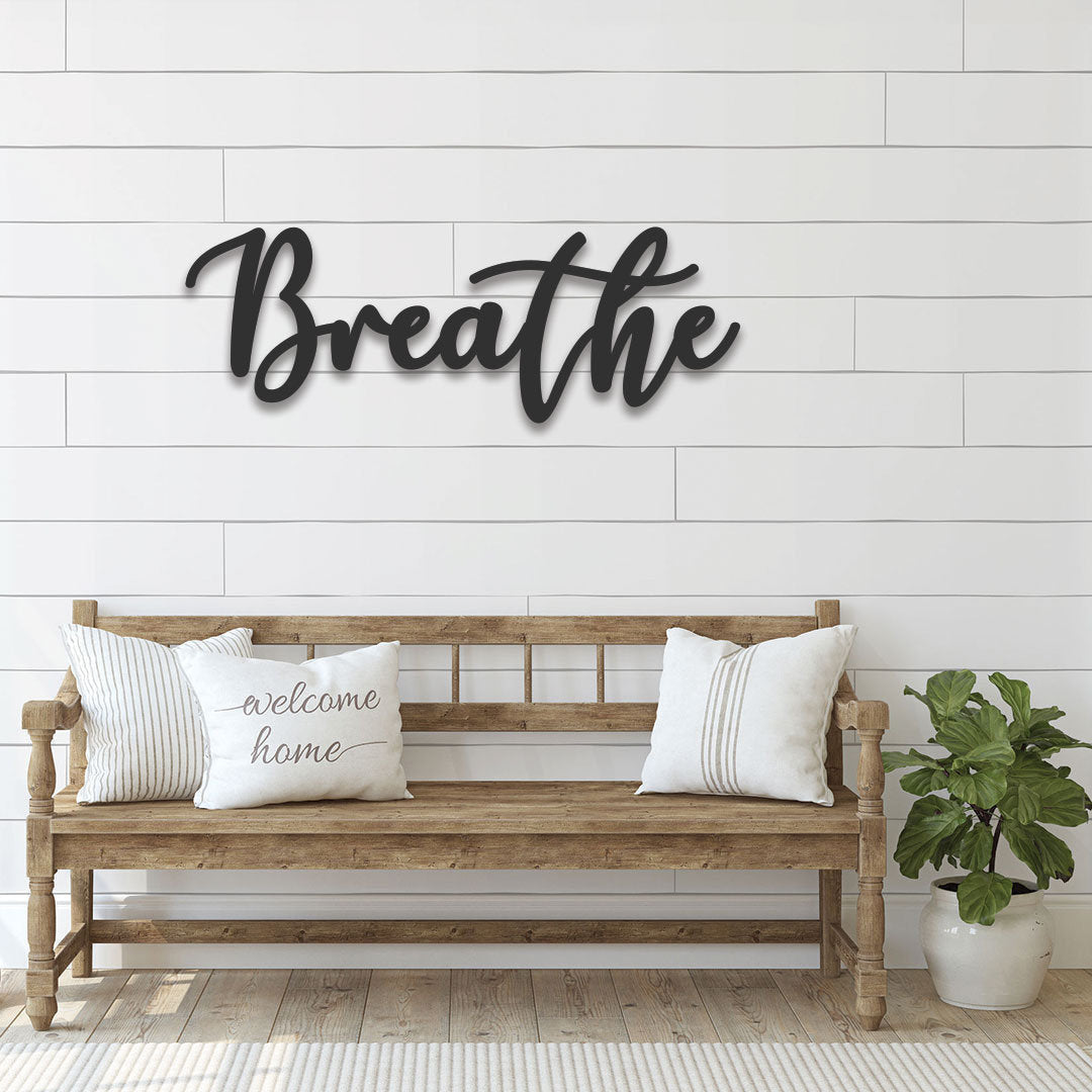 Breathe Sign, Breathe Metal Sign, Custom Cursive Metal Sign, Personalized Yoga Sign, Yoga Studio Decor, Word Wall Art, Meditation Gift Laser Cut Metal Signs Custom Gift Ideas