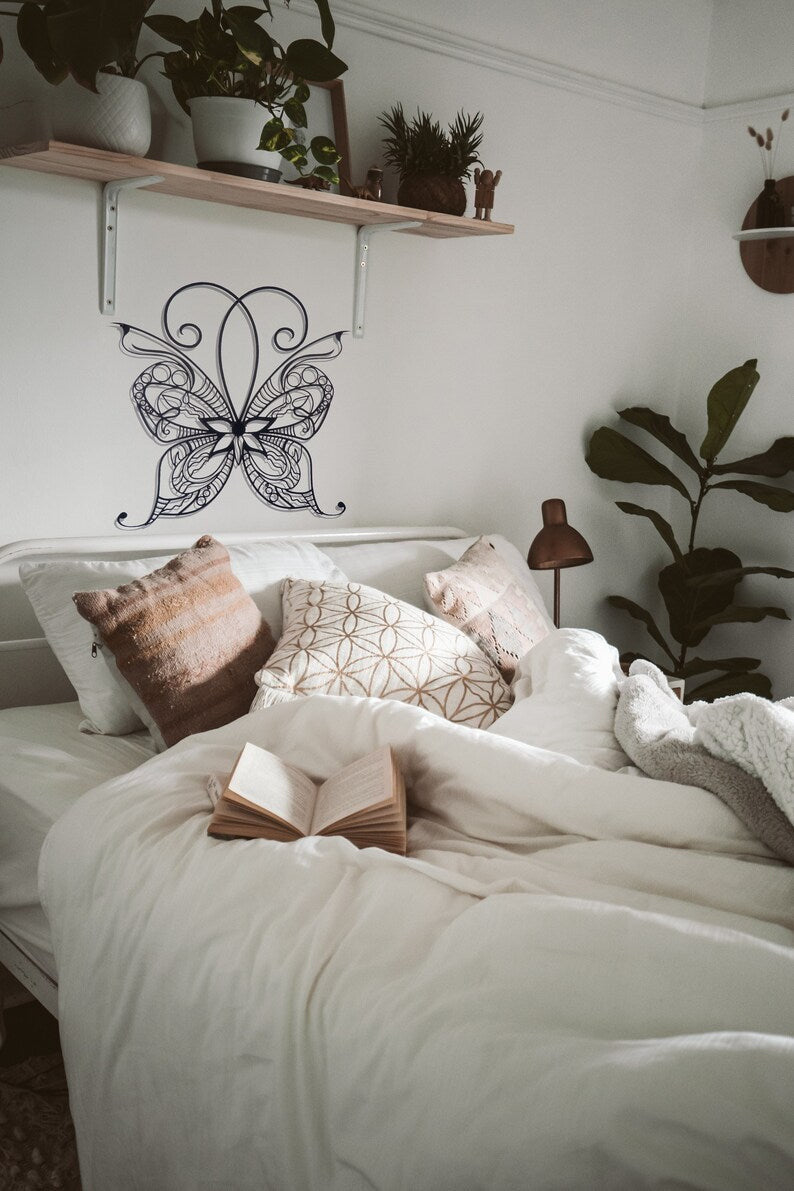 Butterfly and Mandala Above Bed Decor Metal Wall Hanging Metal Sign Butterfly Wall Art Butterfly Room Decor Decorations