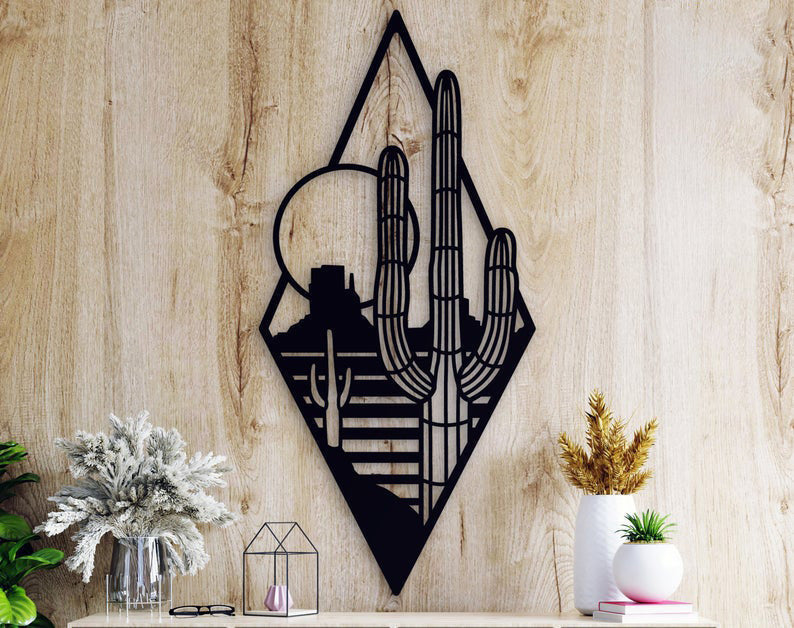 Cactus Plant City Sun Wall Art Cut Metal Sign Laser Cut Metal Signs Custom Gift Ideas