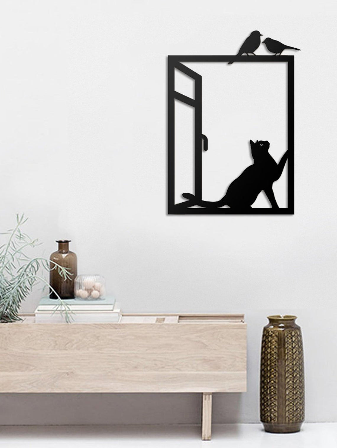 Cat Looking At Birds On Window Cat Lovers Wall Art Decor Cut Metal Sign Laser Cut Metal Signs Custom Gift Ideas