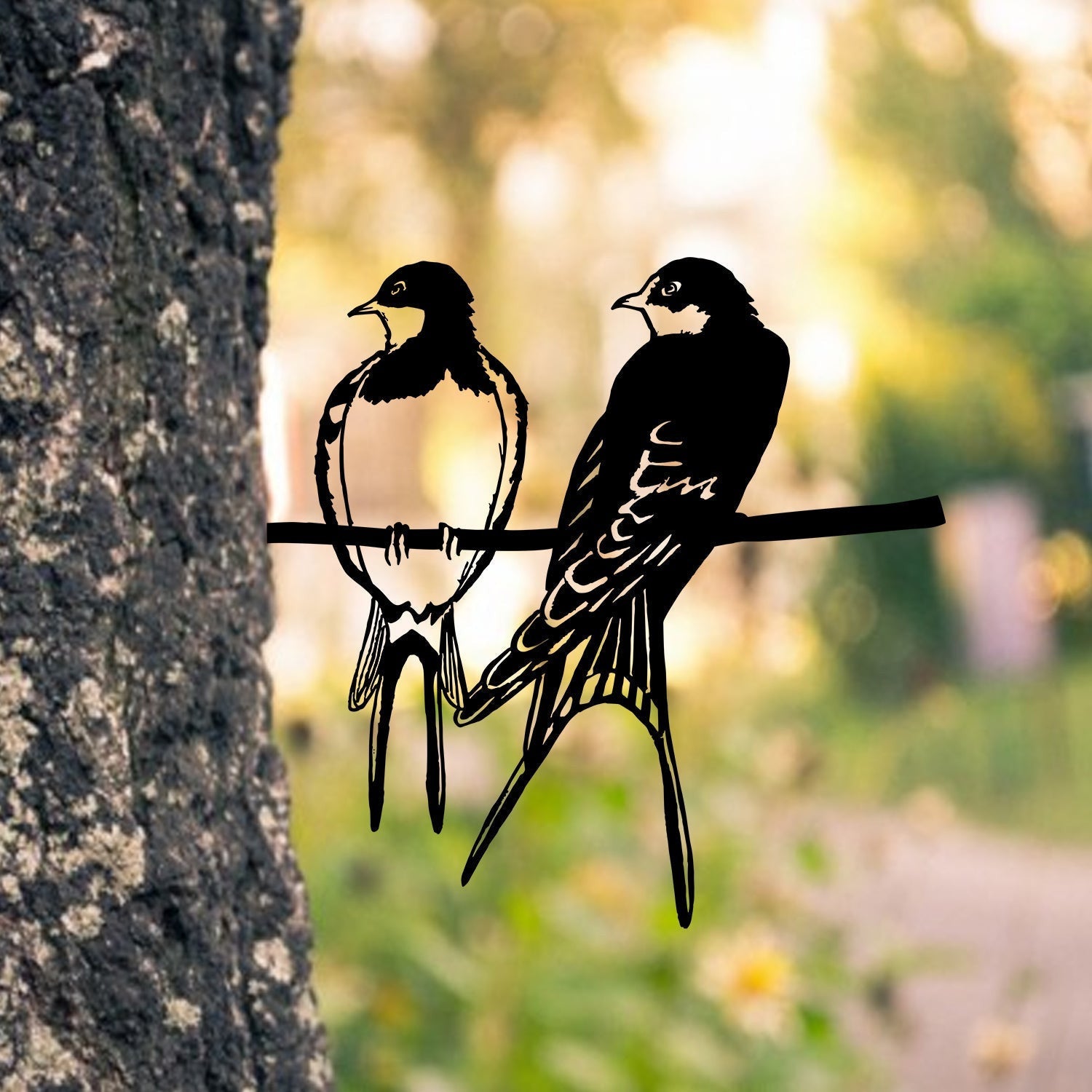 Couple Swallow Birds Metal Art, Tree Stake, Outdoor Decor, Metal Laser Cut Metal Signs Custom Gift Ideas