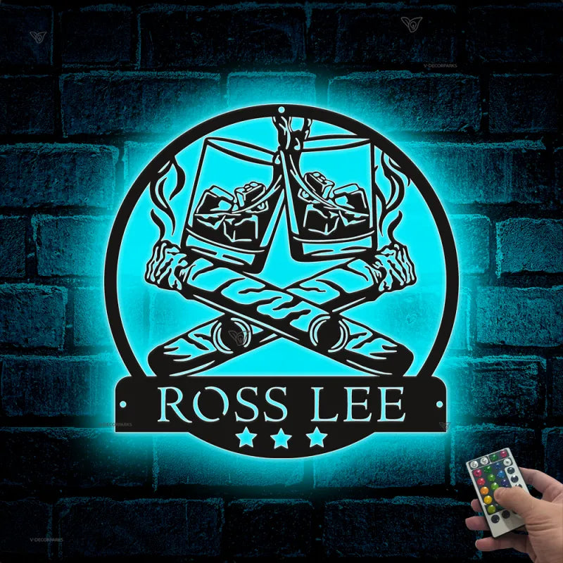 Custom Bourbon Cigar Smoking Metal Bar Sign Led Lights, Personalized Whiskey Smoke Lounge Metal Wall Art, Cocktail Home Bar Pub Metal Sign