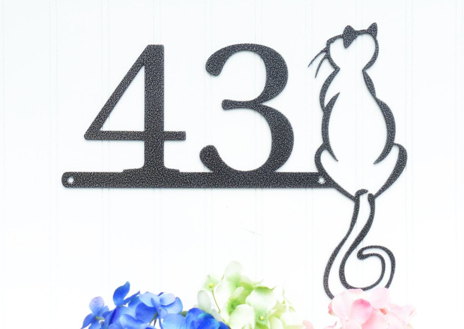 Custom Cat Metal House Number Silver Vein Laser Cut Steel Address Sign Custom Sign Metal Decorations