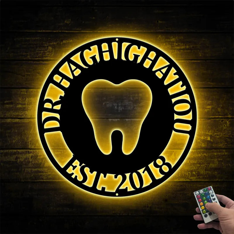 Custom Dental Clinic Metal Sign With Led Lights, Personalized Dentist Metal Name Sign, Custom Doctor Dental Office Metal Wall Sign