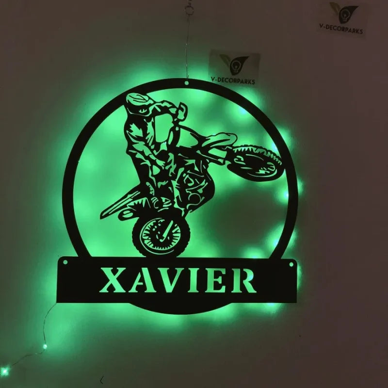 Custom Dirt Bike Metal Wall Art With Led Lights, Metal Motocross Sign, Personalized Biker Name Metal Sign, Motorcross Metal Wall Decor