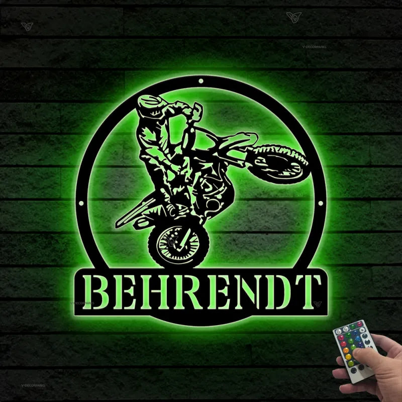 Custom Dirt Bike Metal Wall Art With Led Lights, Personalized Motocross Rider Metal Name Sign, Motorcycle Biker Metal Wall Led Decor