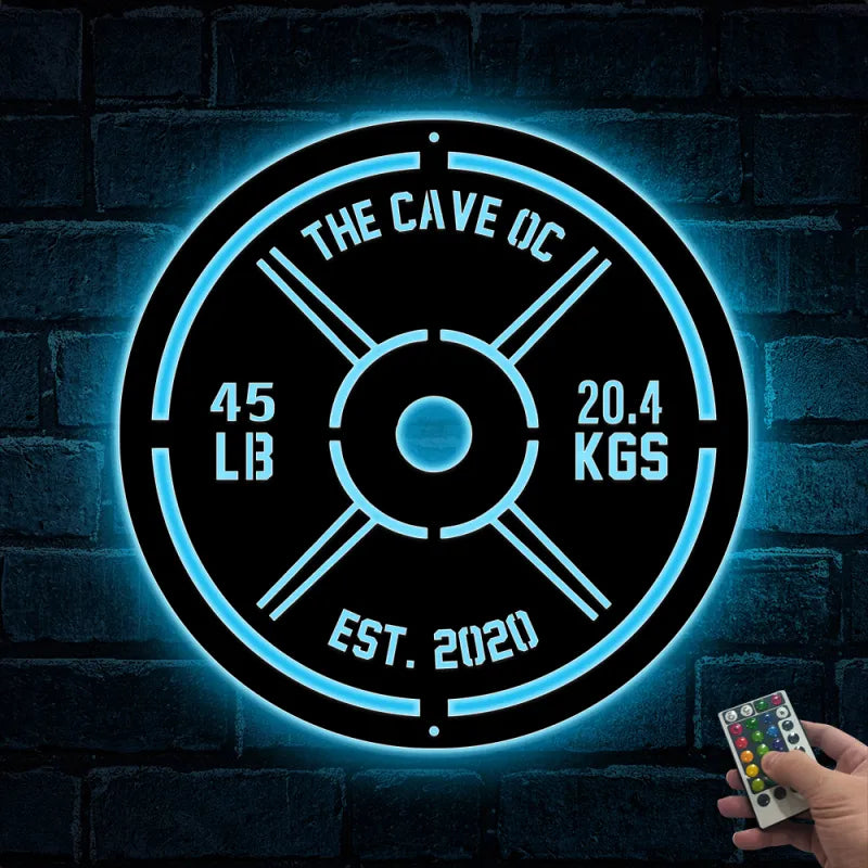 Custom Dumbbell Fitness Metal Wall Art Led Lights, Weightlifting Metal Sign, Fitness Club Metal Wall Decor, Dumbbell Gym Metal Wall Hangings