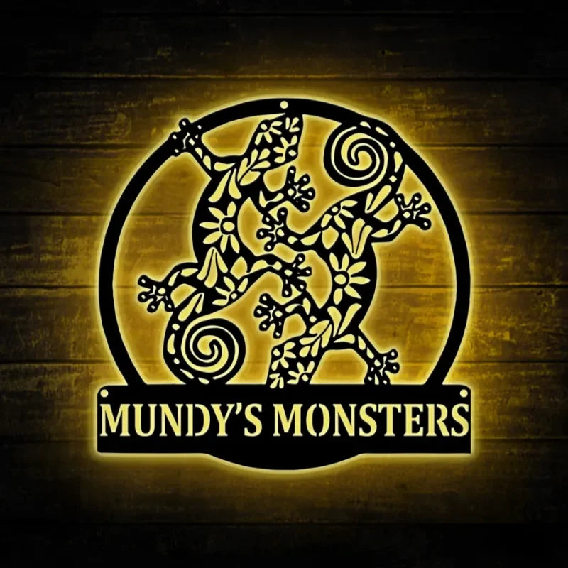 Custom Gecko Metal Wall Art Led Lights, Lizard Metal Sign, Lizard Metal Wall Decor, Personalized Lizard Lover Metal Name Sign