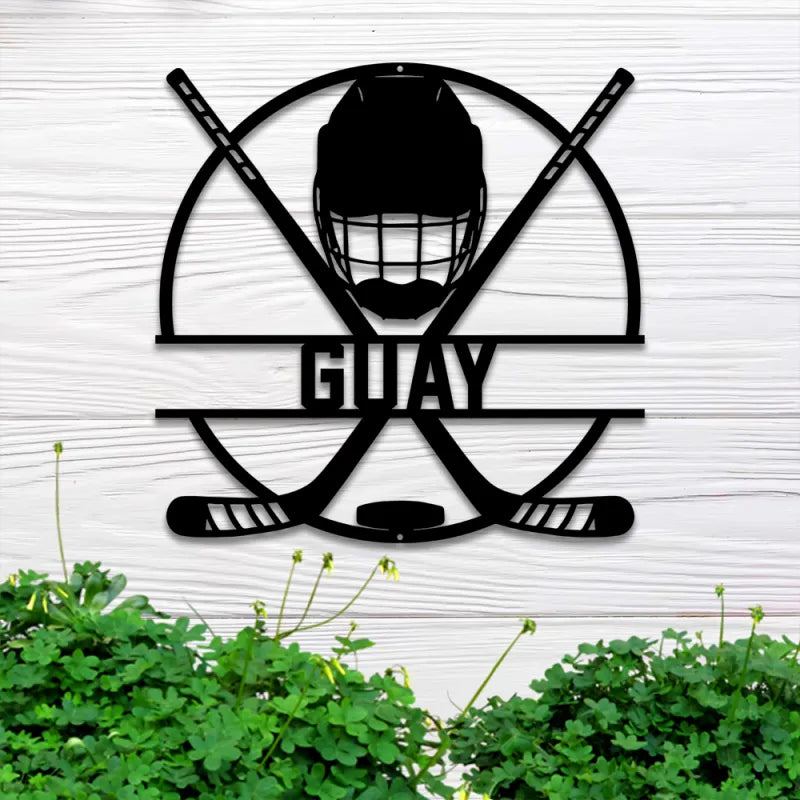Custom Ice Hockey Metal Wall Art Led Light, Personalized Hockey Player Metal Name Sign, Hockey Sticks And Helmet Led Metal Sign