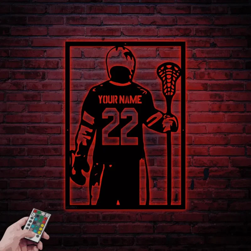 Custom Lacrosse Metal Sign Led Lights, Custom Name Lacrosse Sign, Lacrosse Wall Decor, Lacrosse Jersey Art, Lacrosse Decor, Lacrosse Gifts Player Room