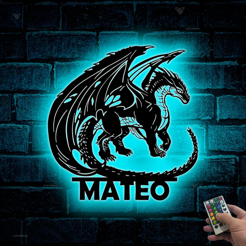Custom Mythical Dragon Metal Sign Led Lights, Dragon Name Metal Art, Monogram Dragon Metal Wall Decor, Metal Dragon Neon Sign, Dragon House Sign
