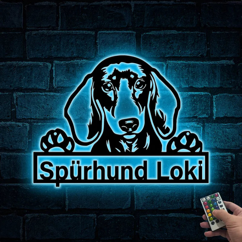 Custom Name Dachshund Dog Metal Wall Art Led Light, Personalized Dachshund Lover Name Sign, Dog Grooming Metal Wall Led Decor