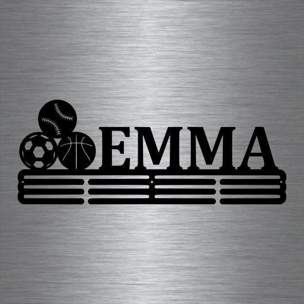 Custom Name Soccer Ball, Basketball, And Baseball Softball Medal Hanger Holder Display Rack 3 Rung, Cut Metal Sign, Metal Wall Art, Laser Cut Metal Signs Custom Gift Ideas