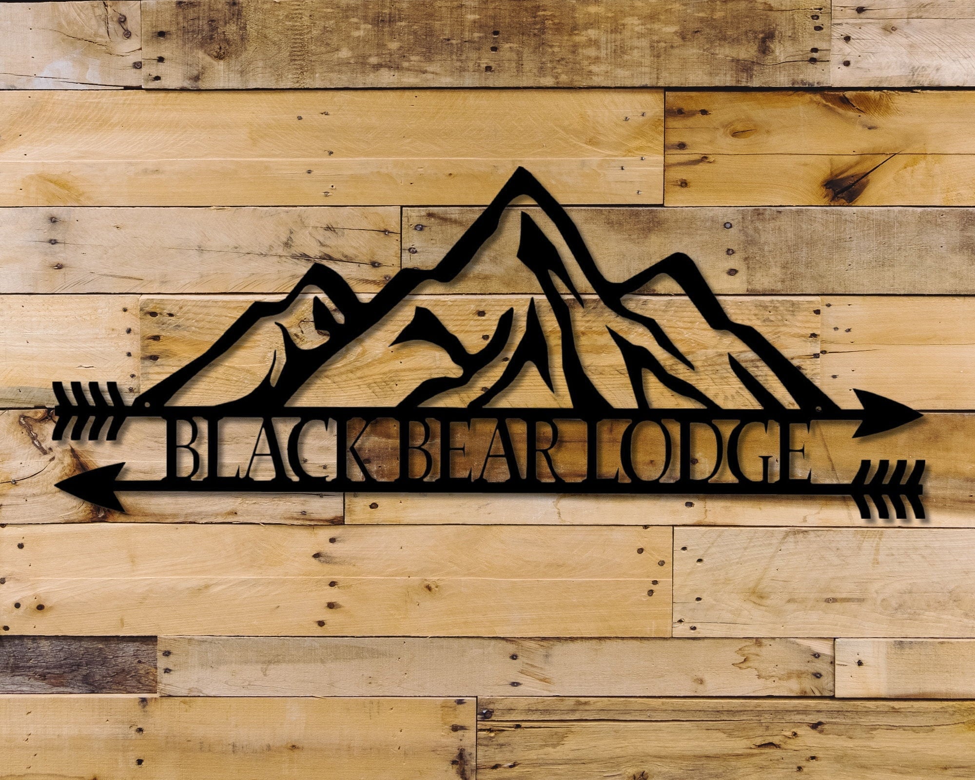 Custom Personalized Double Arrow Mountain Range Adventure Name Sign Rustic Metal Sign Housewarming Gift Metal Wall Art Farmhouse Decor Laser Cut Metal Signs Custom Gift Ideas
