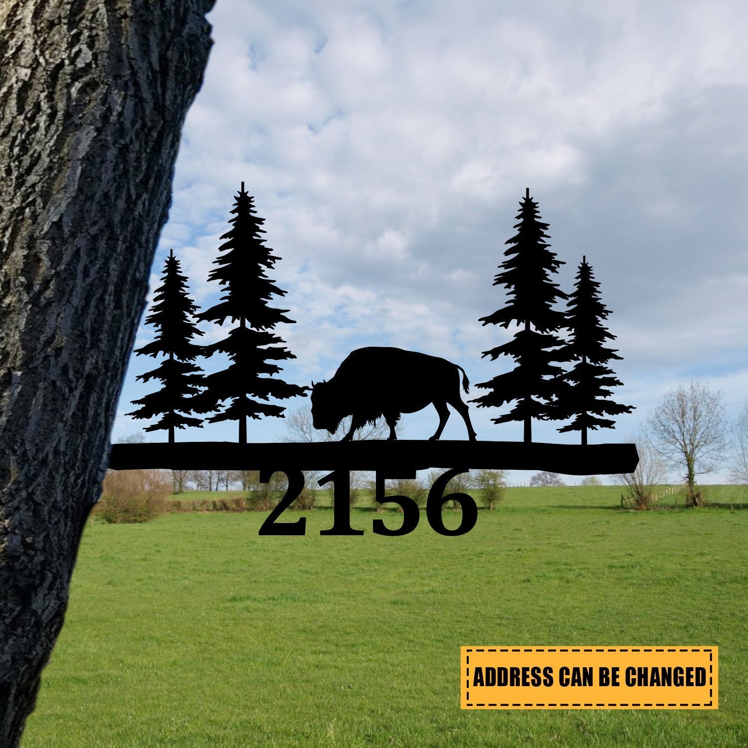 Customized Address Bison Metal Tree Stake, Deer Wedding Gift Laser Cut Metal Signs Custom Gift Ideas