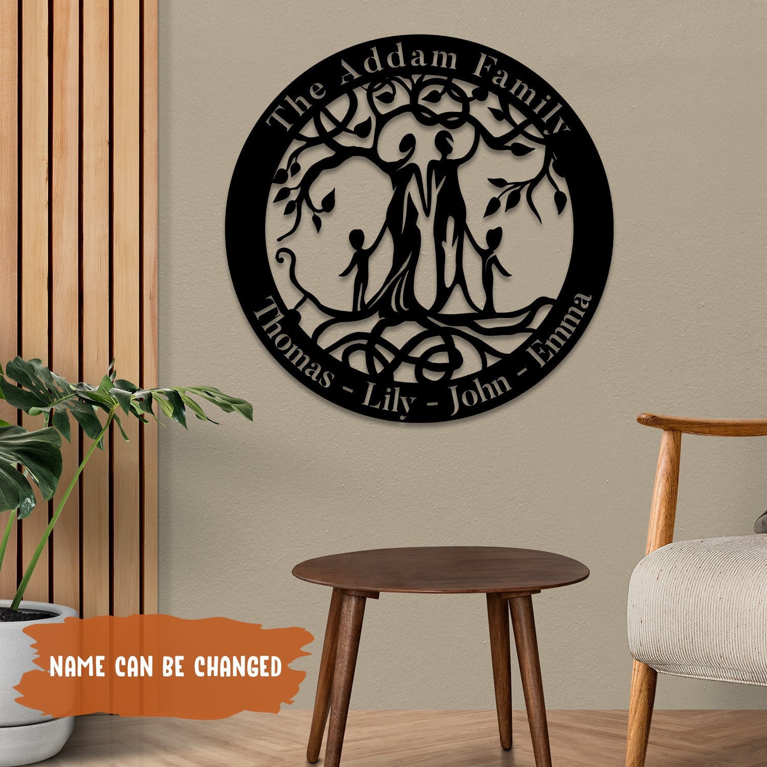 Customized Husband, Wife And Two Children Tree Of Life Metal Art, Mother's Day Gift Laser Cut Metal Signs Custom Gift Ideas