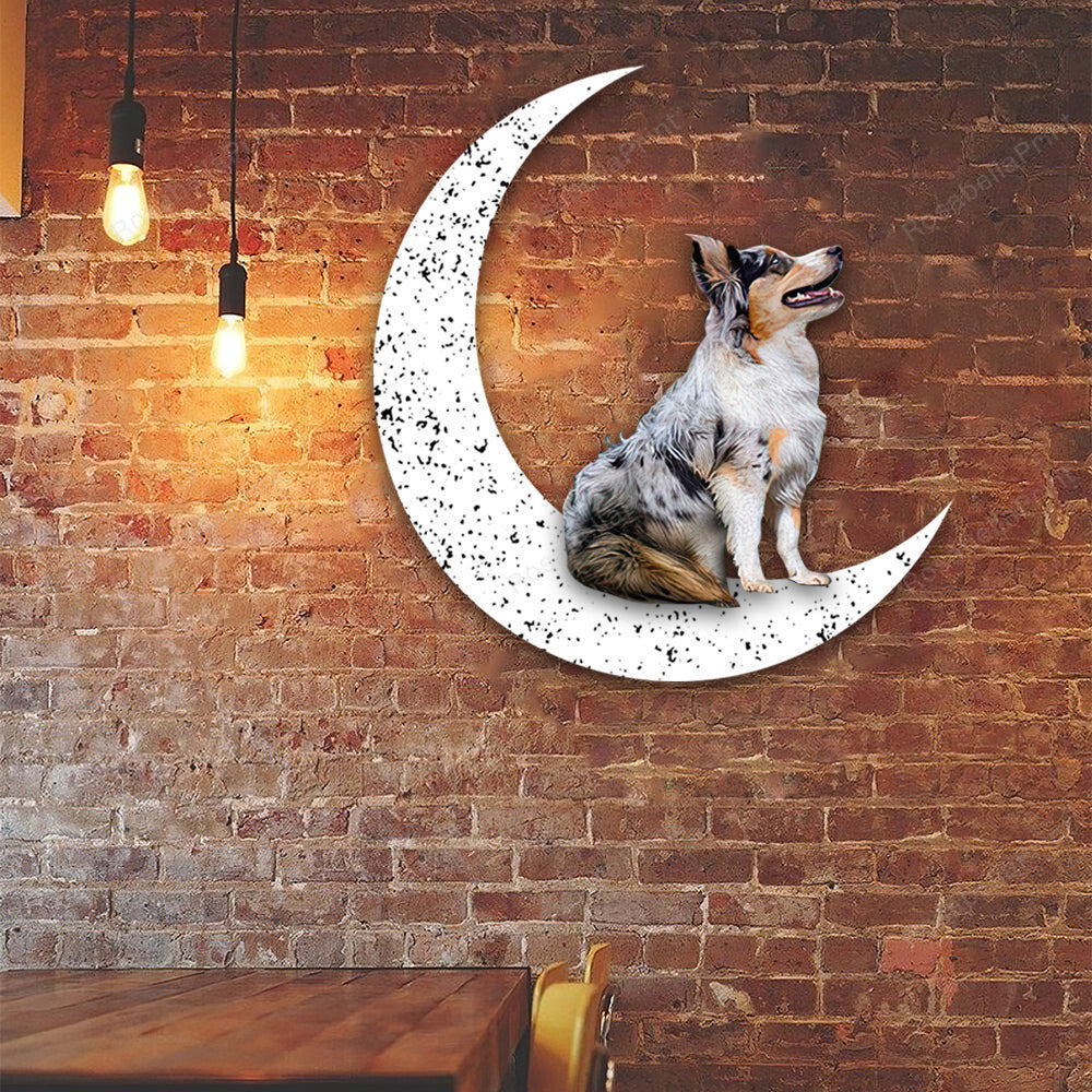 Dog Metal Sign Australian Shepherd Sit On The Moon Gift for Dog Lover Decorations