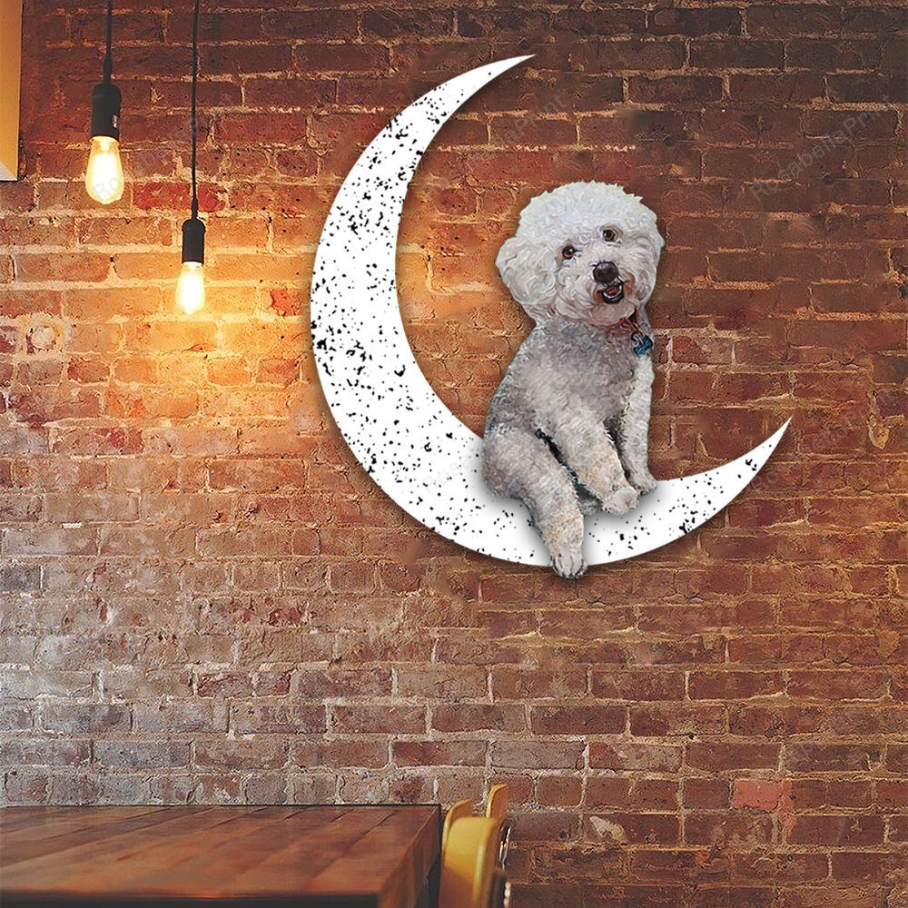 Dog Metal Sign Bichon Frise Sit On The Moon Dog Wall Sign Gift for Dog Lover Decorations