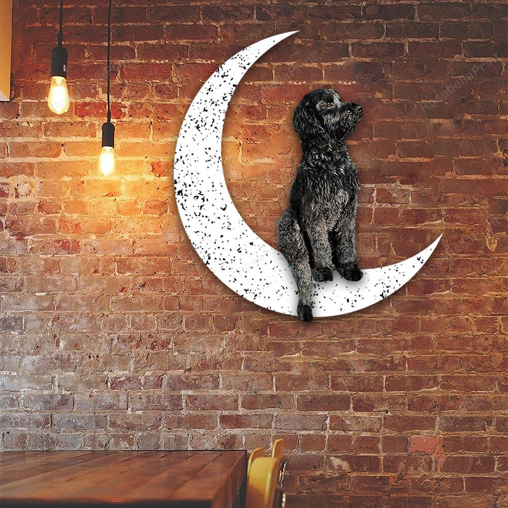 Dog Metal Sign Black Goldendoodle Sit On The Moon Dog Wall Sign Gift for Dog Lover Decorations