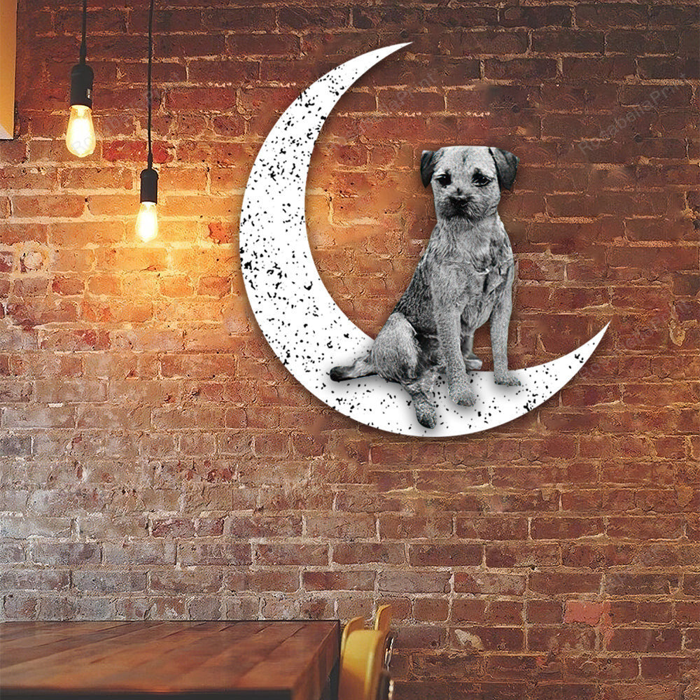 Dog Metal Sign Border Terrier Sit On The Moon Dog Wall Sign Gift for Dog Lover Decorations