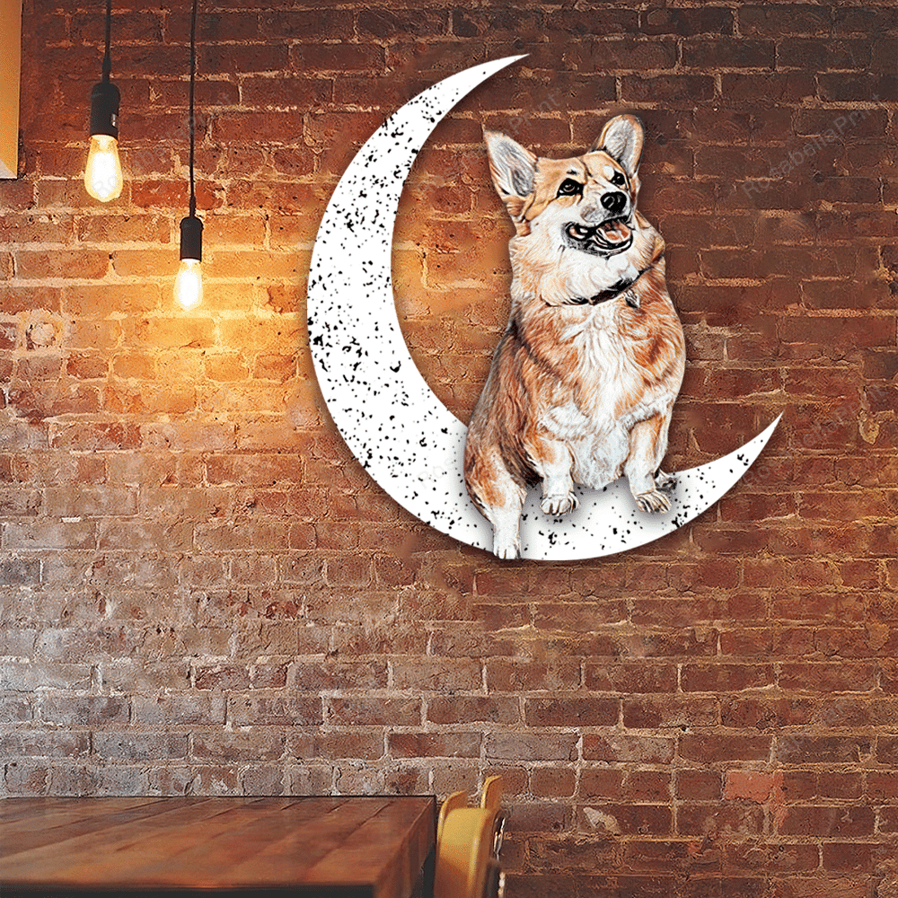 Dog Metal Sign Corgi Sit On The Moon Gift for Dog Lover Decorations