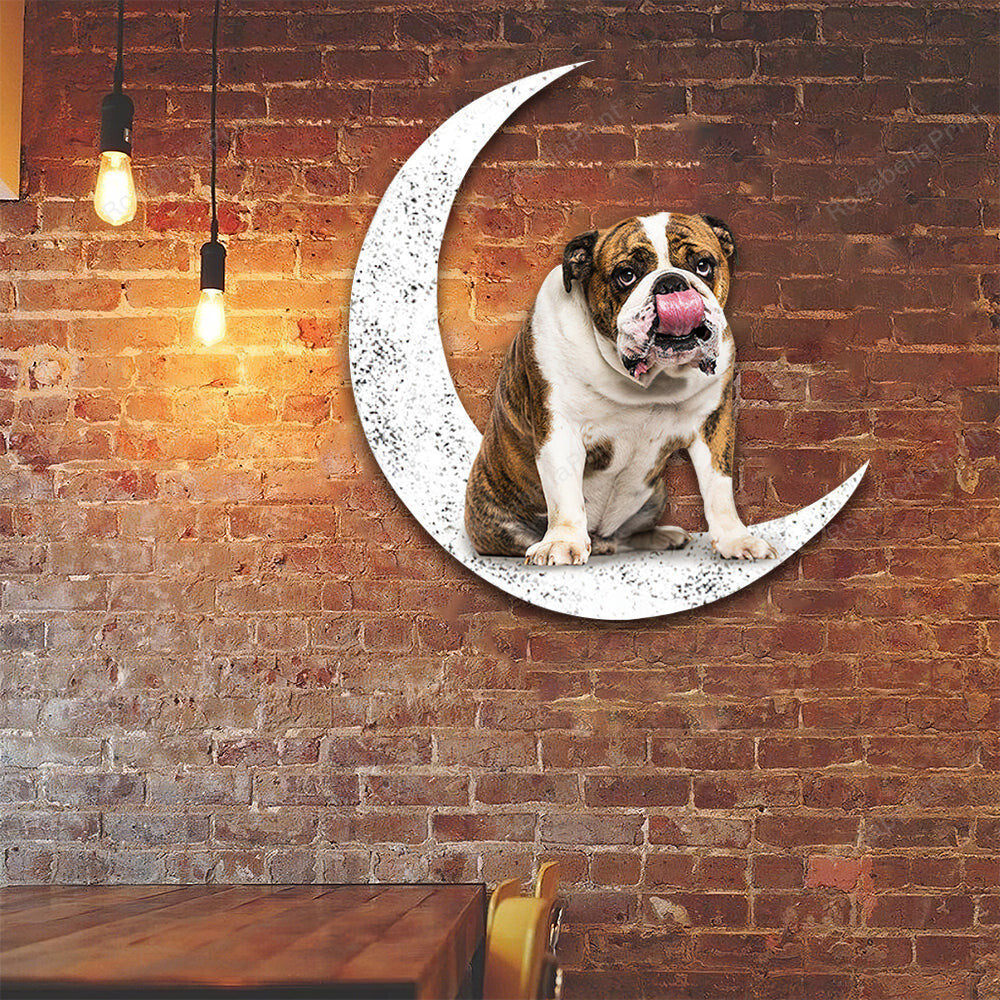 Dog Metal Sign English Bulldog 2 Sit On The Moon Gift for Dog Lover Decorations