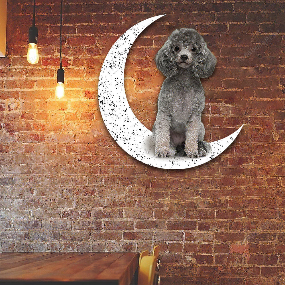 Dog Metal Sign Grey Poodle Sit On The Moon Gift for Dog Lover Decorations