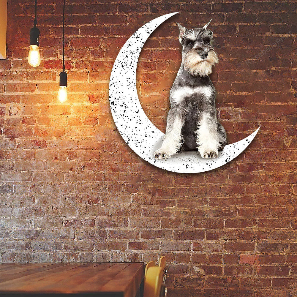 Dog Metal Sign Schnauzer 2 Sit On The Moon Gift for Dog Lover Decorations
