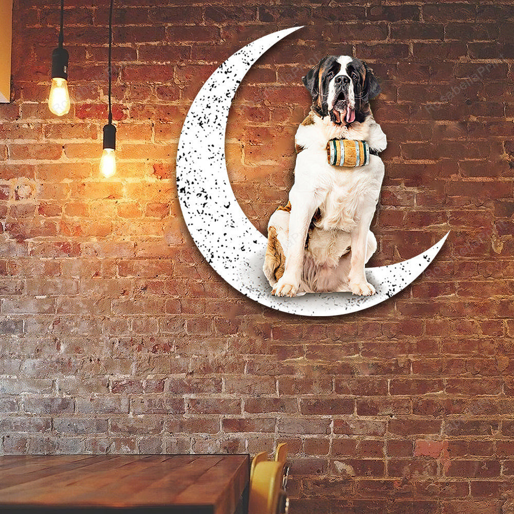Dog Metal Sign St Bernard 2 Sit On The Moon Gift for Dog Lover Decorations