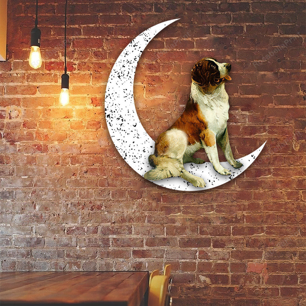 Dog Metal Sign St Bernard Sit On The Moon Gift for Dog Lover Decorations