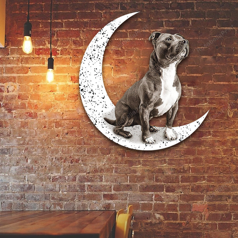 Dog Metal Sign Staffordshire Bull Terrier 1 Sit On The Moon Gift for Dog Lover Decorations