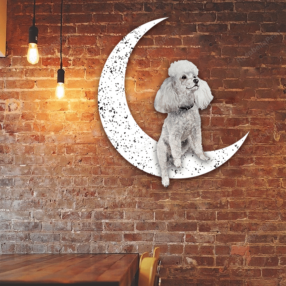 Dog Metal Sign White Poodle 2 Sit On The Moon Gift for Dog Lover Decorations