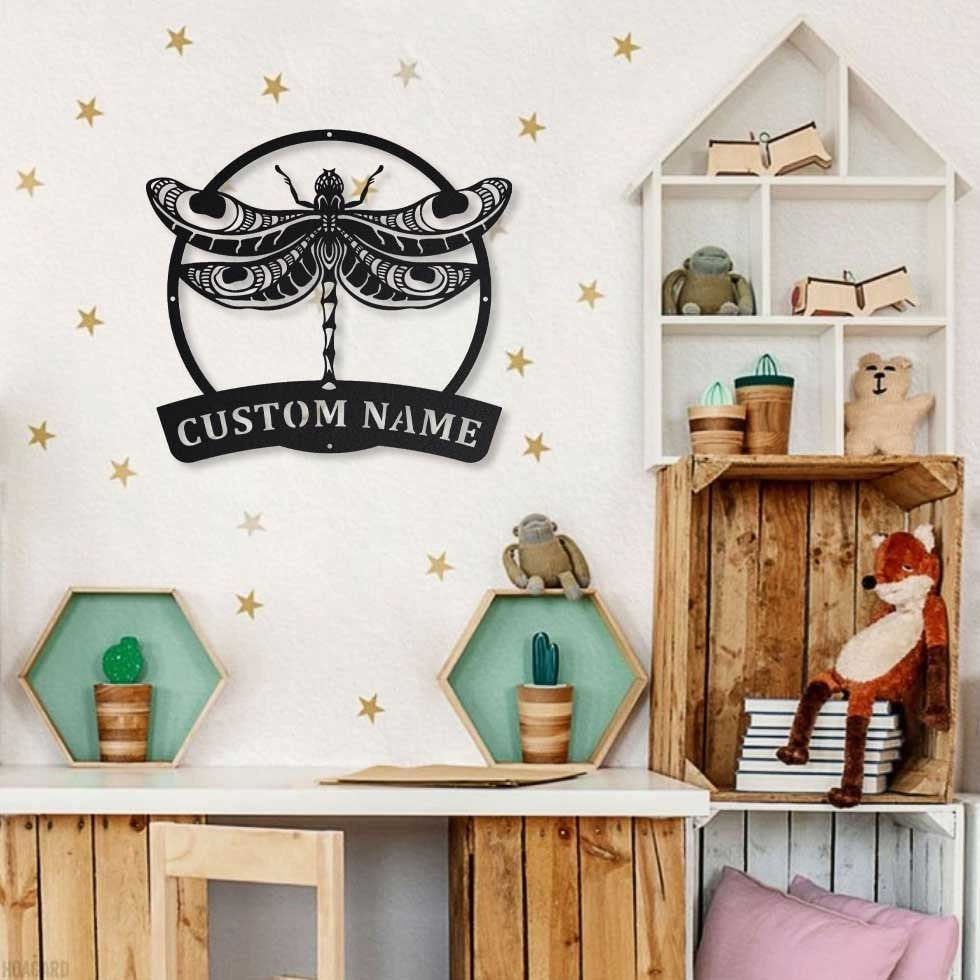 Dragonfly Monogram Metal Sign Art, Metal Wall Art, Dragonfly Antler Decor, Dragonfly Metal Sign, Housewarming Outdoor Metal Sign Laser Cut Metal Signs Custom Gift Ideas