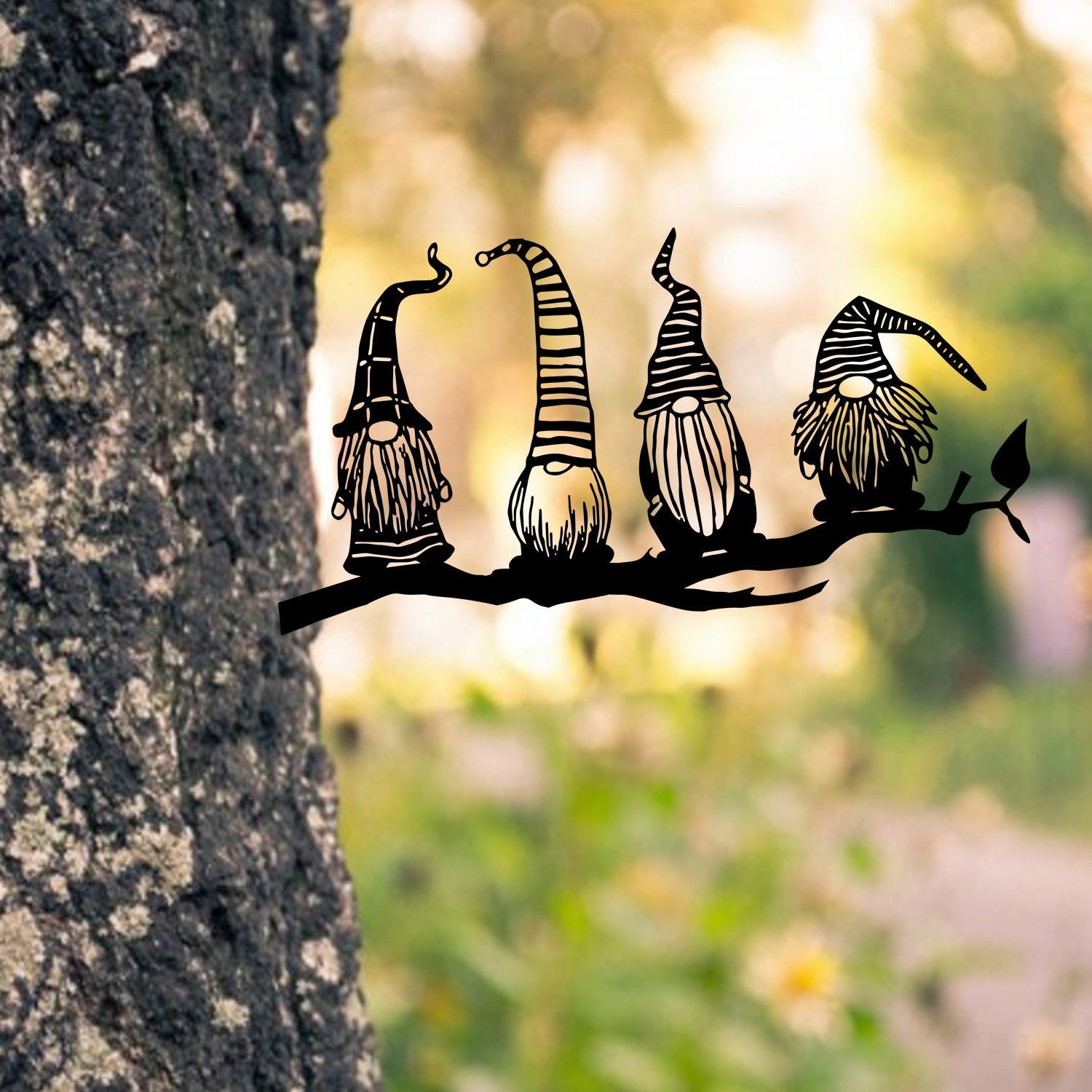 Four Gnomes Funny Metal Tree Sign, Christmas Decor, Gift Ideas, Metal Laser Cut Metal Signs Custom Gift Ideas