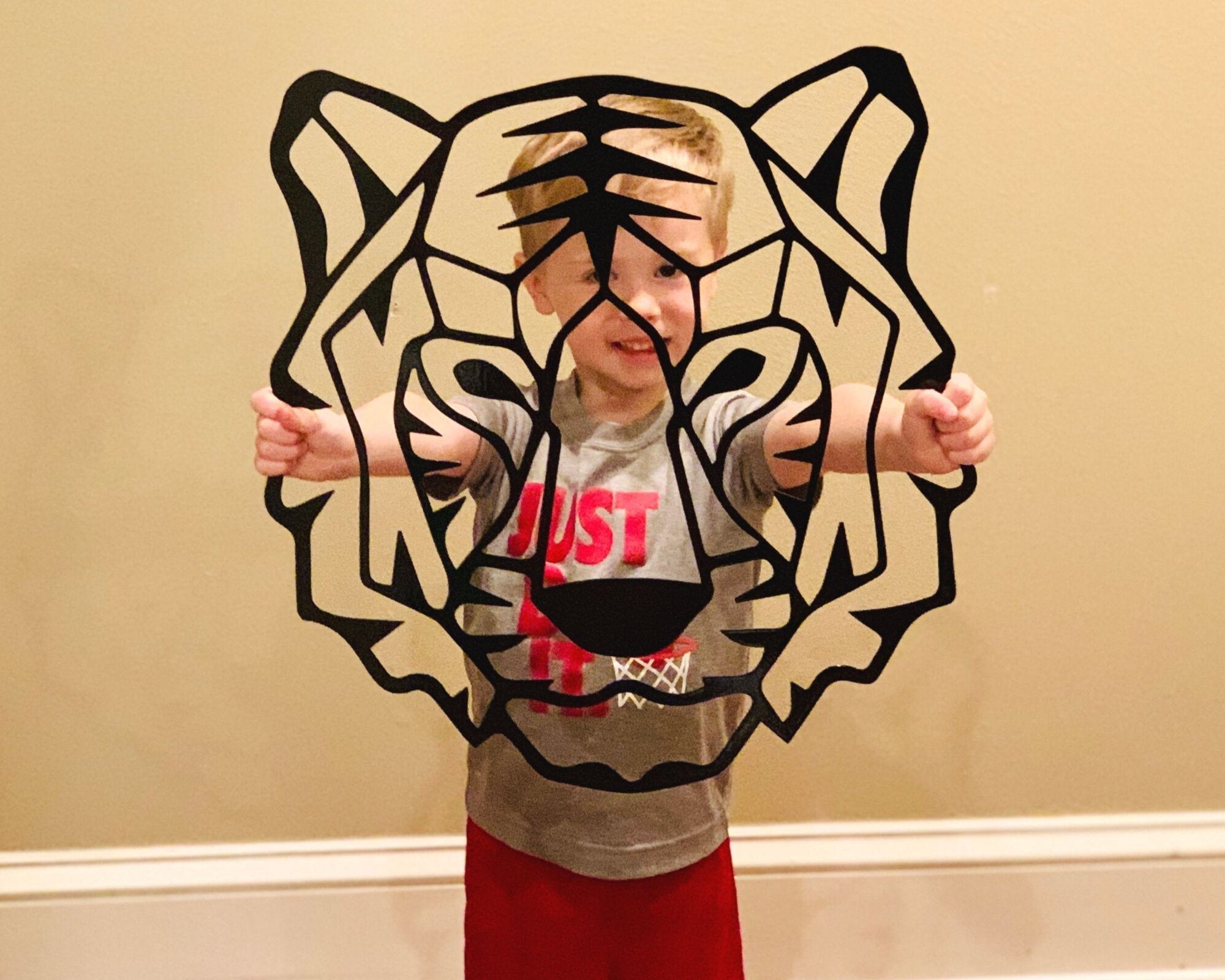 Geometric Tiger Kids Room Metal Decor Door Hanger Housewarming Gift Tiger Fans Kids Room Geometric Animal Art Decorations