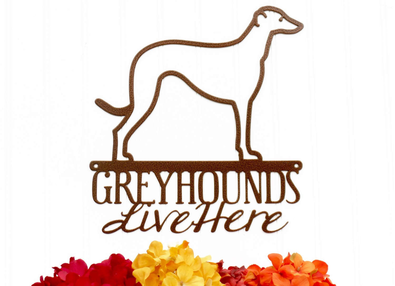 Greyhounds Live Here Metal Sign Copper Greyhound Hound Dog Sign Wall Decor Signs Dog Decorations