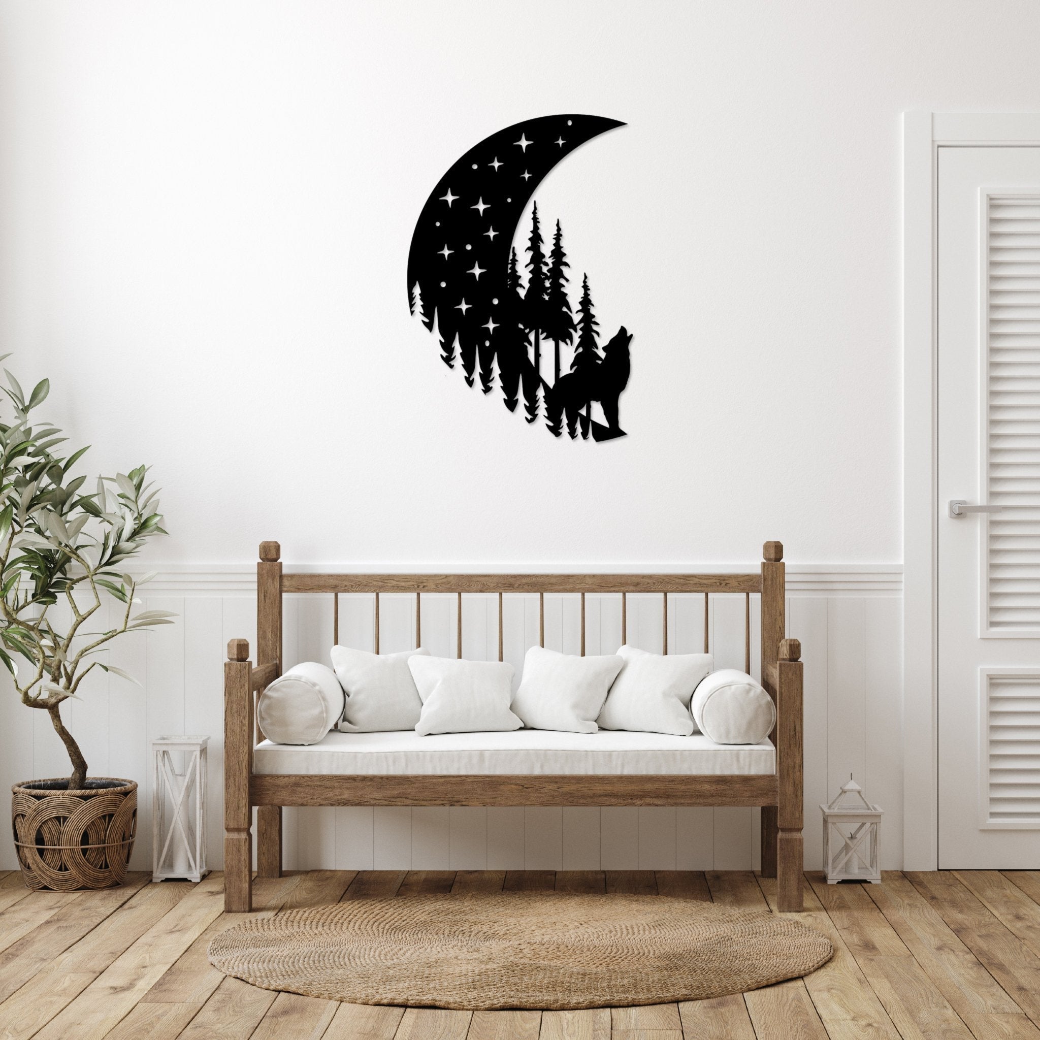 Howling Moon Tree Star for Animal Lovers Decor Wall Art Cut Metal Sign Laser Cut Metal Signs Custom Gift Ideas