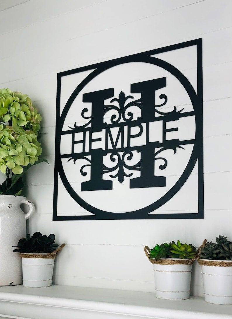 Last Name Monogram Squared Circle Monogram Family Name Address Sign Porch Housewarming Wedding Anniversary Gift Decorations